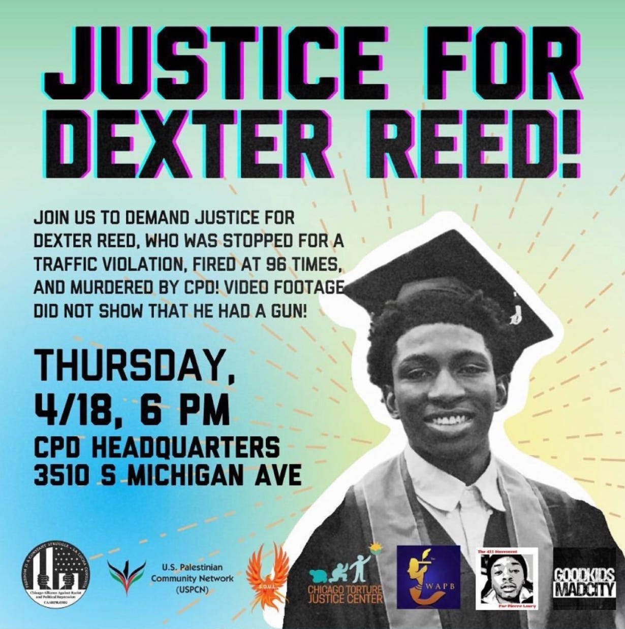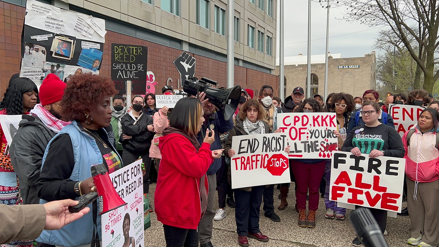 CHICAGO, Ill. — Around 60 protesters showed up outside Chicago Police headquarters to protest the death of Dexter Reed, who was shot by officers after he shot at them during a traffic stop, hitting one of the officers in the arm. Officers fired over 70 times, Reed eleven.