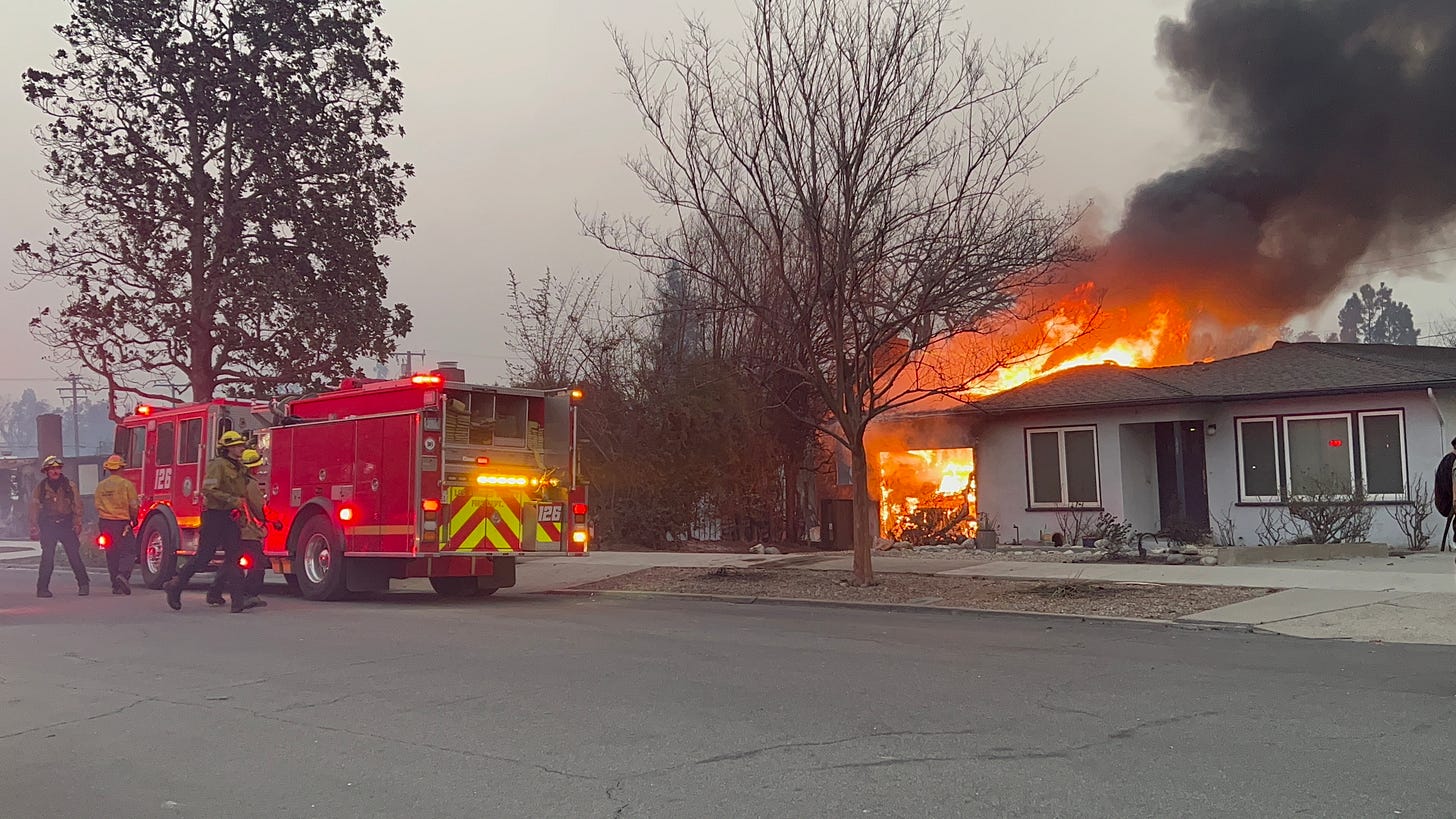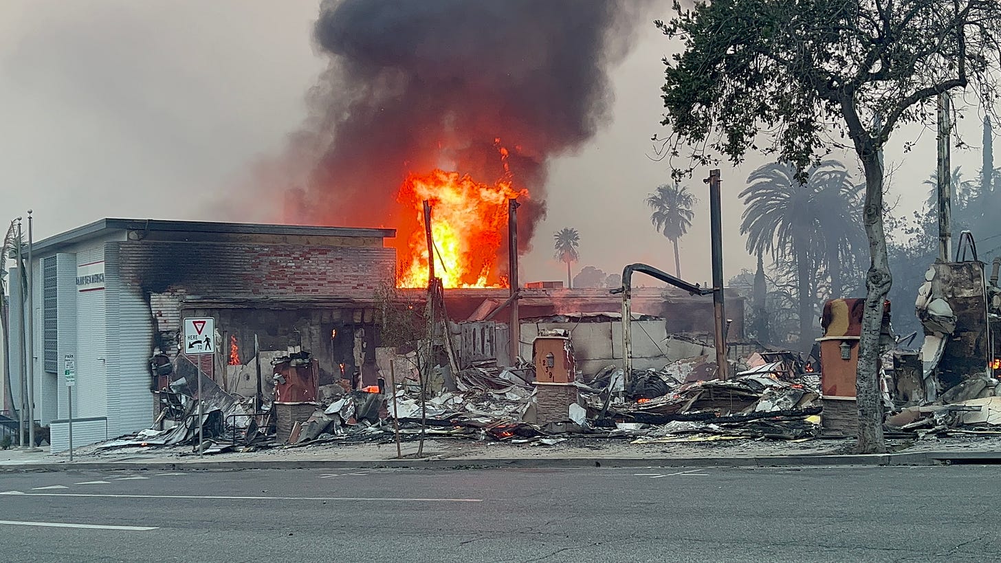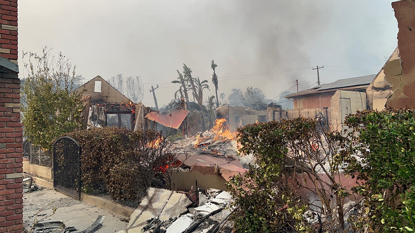 In Atladena, burned down homes sometimes still had a fire in the wreckage due to still-active gas lines.
