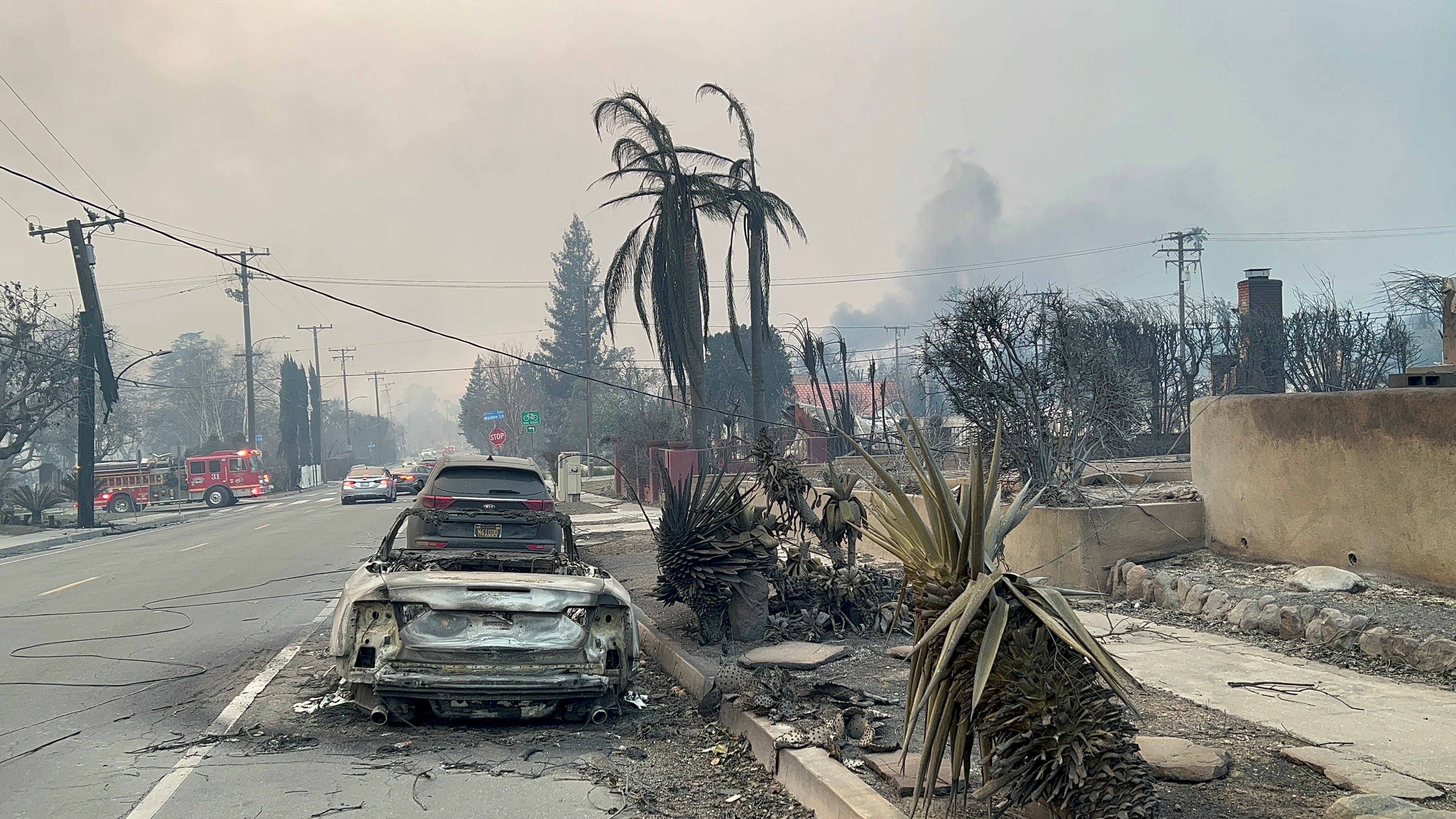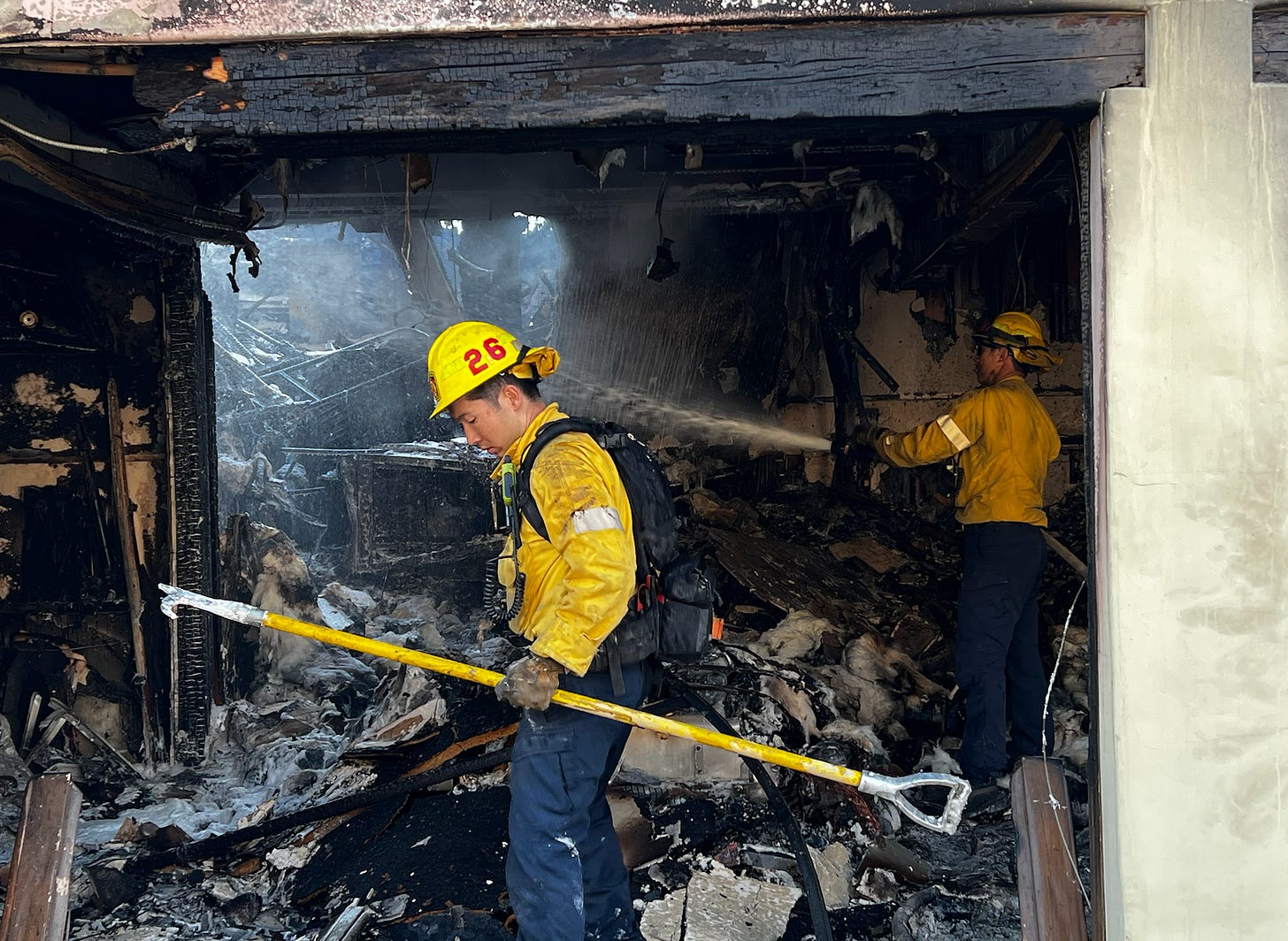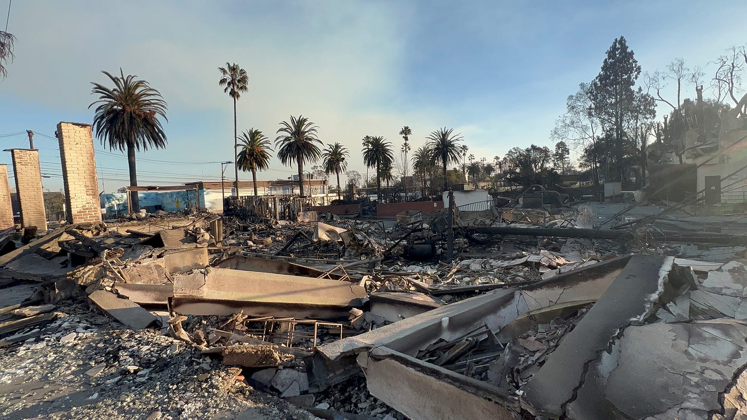In Atladena, burned down homes sometimes still had a fire in the wreckage due to still-active gas lines.