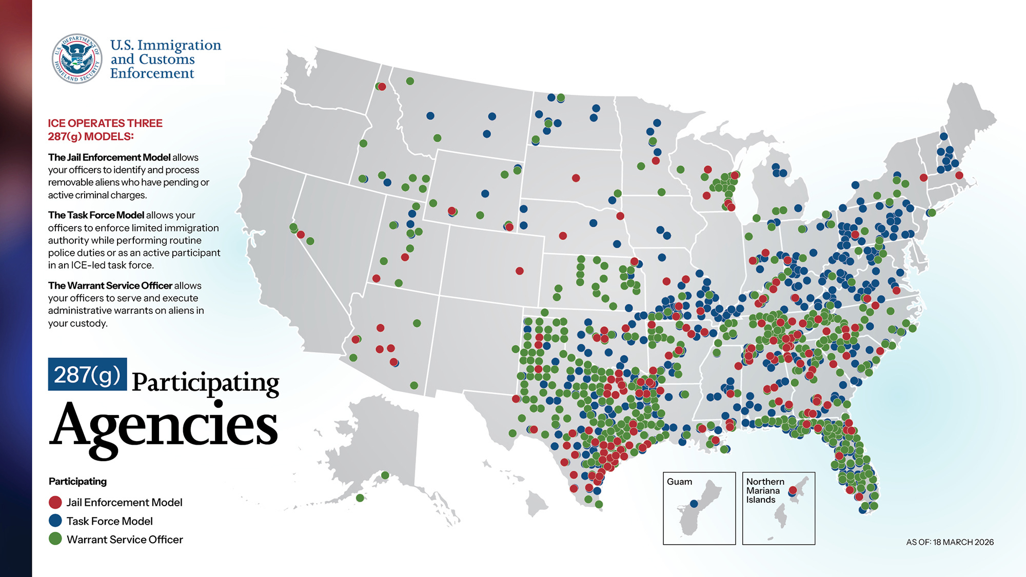 ICE reports there have been 1,637 Memorandums of Agreement for 287(g) programs covering 39 states and 2 U.S. territories as of April. It needs to be said this is a dramatic increase from the Biden-Harris administration.