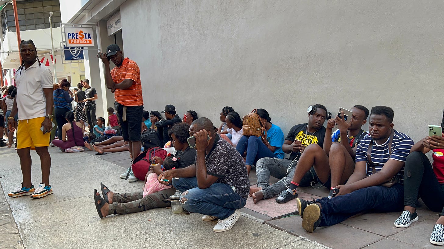 (Africans and Haitians waiting in downtown Tapachula)